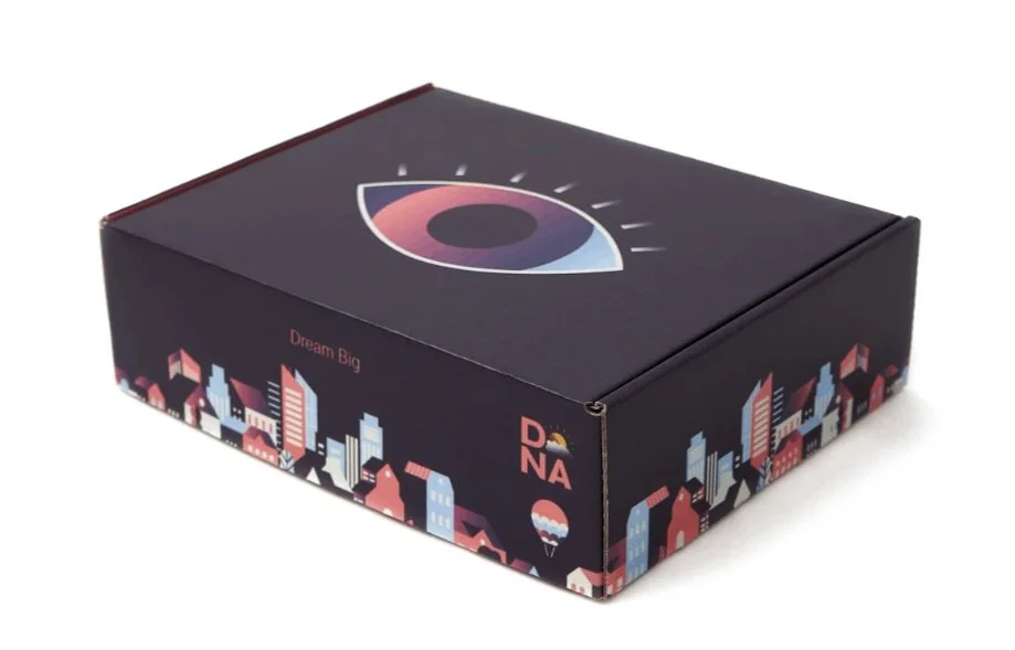 I created the complex box die-cut file and the print card that went inside as well as assembling the boxes for client delivery.